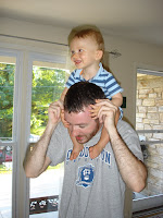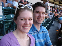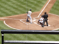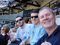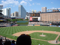 Recently I had my first Father's day and it was quite an event. First,I woke up to a brand new coffee mug with Aiden's hand and foot print on the side. Next Julie and I went to breakfast. I thought I would spend the rest of day getting some stuff done around the house, mow the lawn, and try to relax. As I was outside kicking the mower for its failure to start (again), Julie's whole family came walking up the block. Julie had arranged for her mom to watch Aiden while she and I went to the Orioles game with her dad and brothers. It was a great day. We took the light rail down to the park and she had arranged for very good seats in the club level (in the shade with people coming around to take beer and food orders). The Orioles lost of course but not before sending the game to extra innings with a two run homer in the ninth. We finished off the day by ordering pizza from our favorite take out place. I have included some pics from Father's day below.